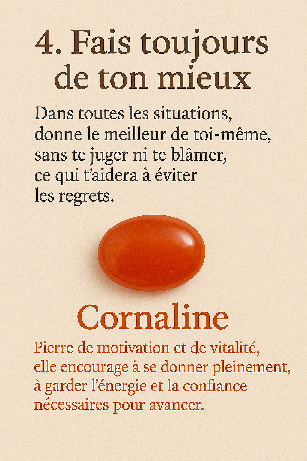 Dans toutes les situations, donne le meilleur de toi-même, sans te juger ni te blâmer, ce qui t’aidera à éviter les regrets.