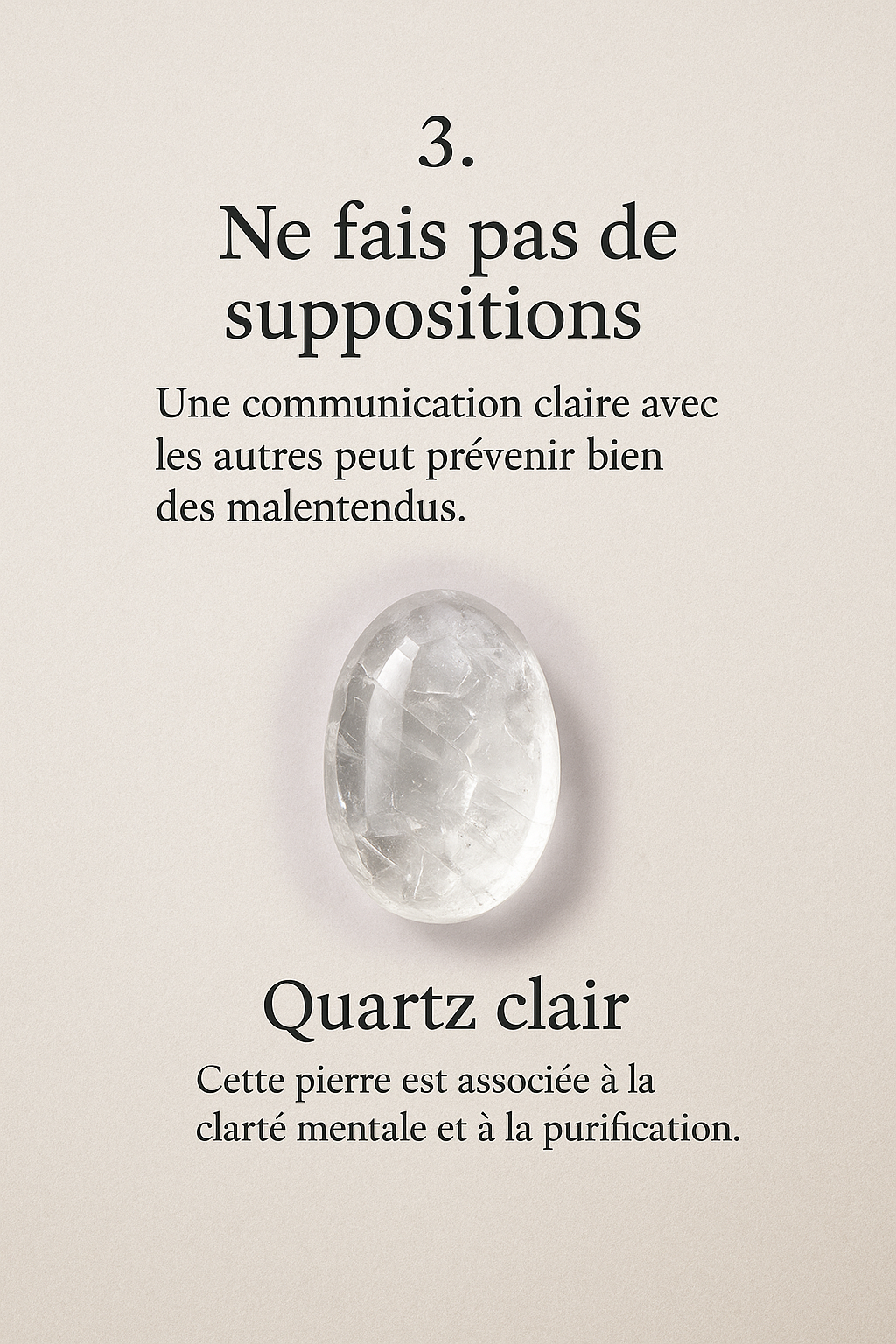 Ne devine pas ce que pensent les autres ou leurs intentions. Communique clairement pour éviter malentendus et conflits.